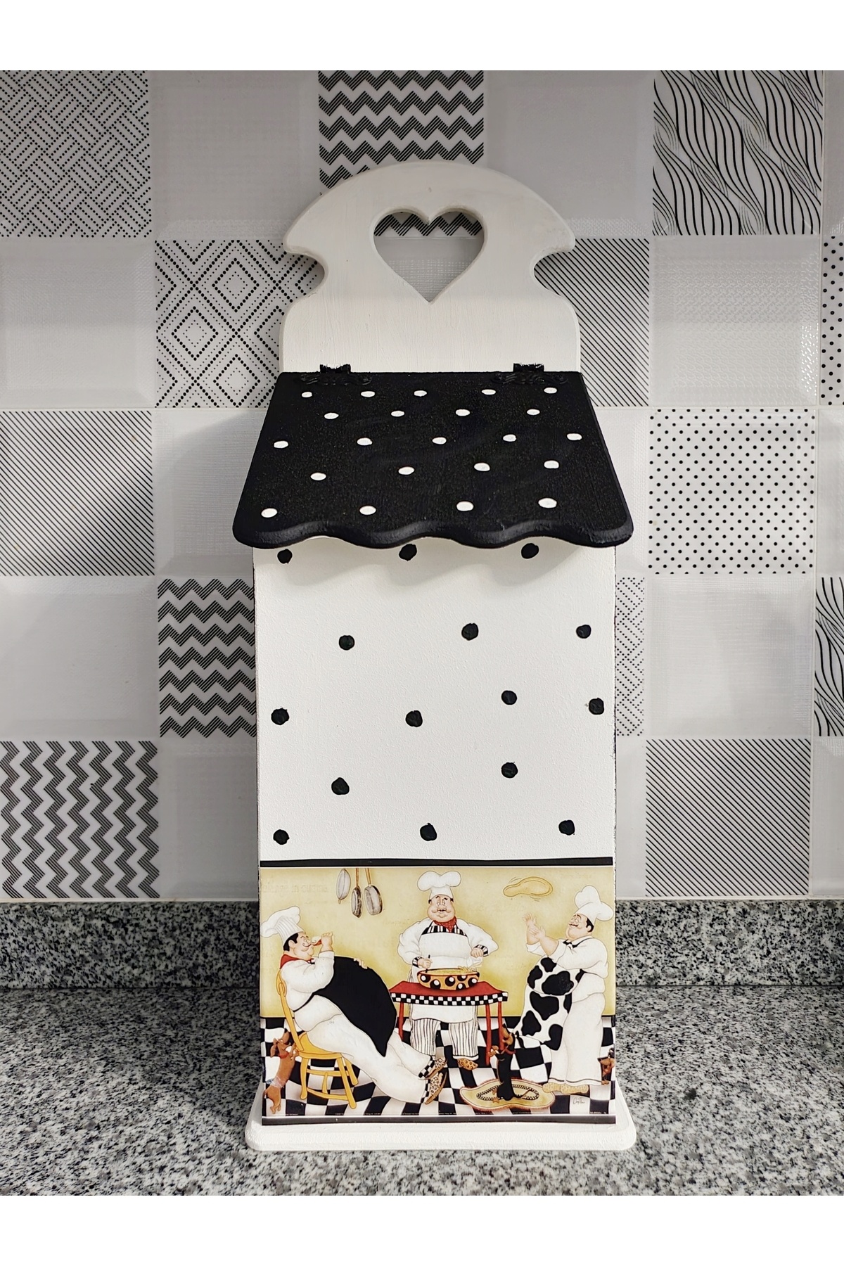 LOVYCO Ahşap Dekoratif Mutfak Için Poşetlik Saklama Kutusu Aşçı Desenli Vintage Özellikleri