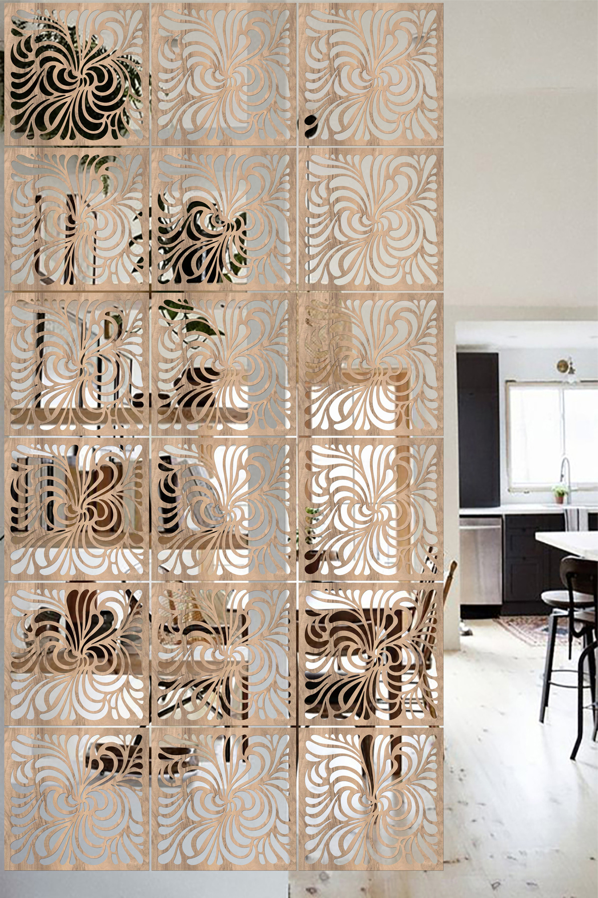Lucena Ahşap Seperatör Sarkıt Panel Paravan Levha Seti 4 Adet Lazer Desen Seçenekli - 011