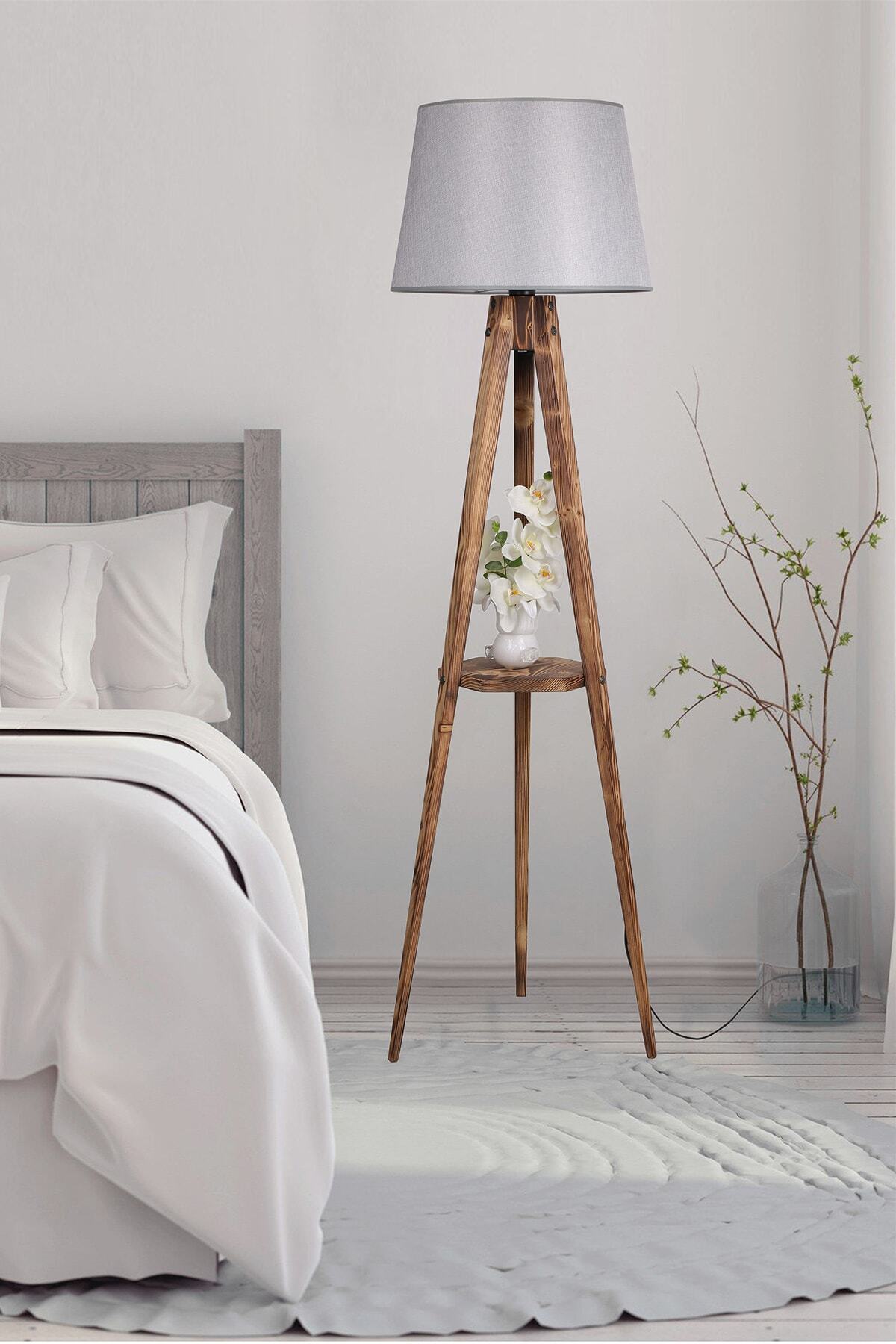 Lumexx Sehbalı Tripod Yanık Lambader Pramit Hasır Gri Abajurlu