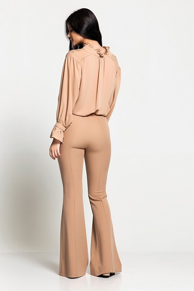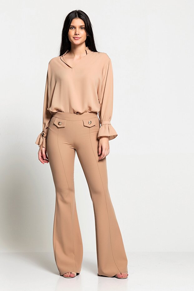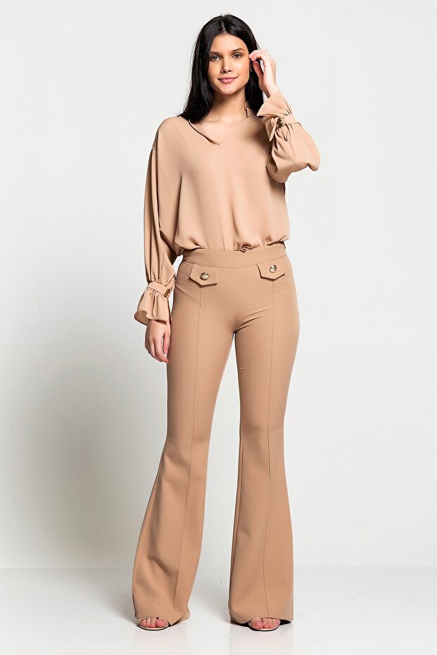 Luppio Kadın Bej Yüksek Bel Cep Detaylı Ispanyol Paça Pantolon Özellikleri