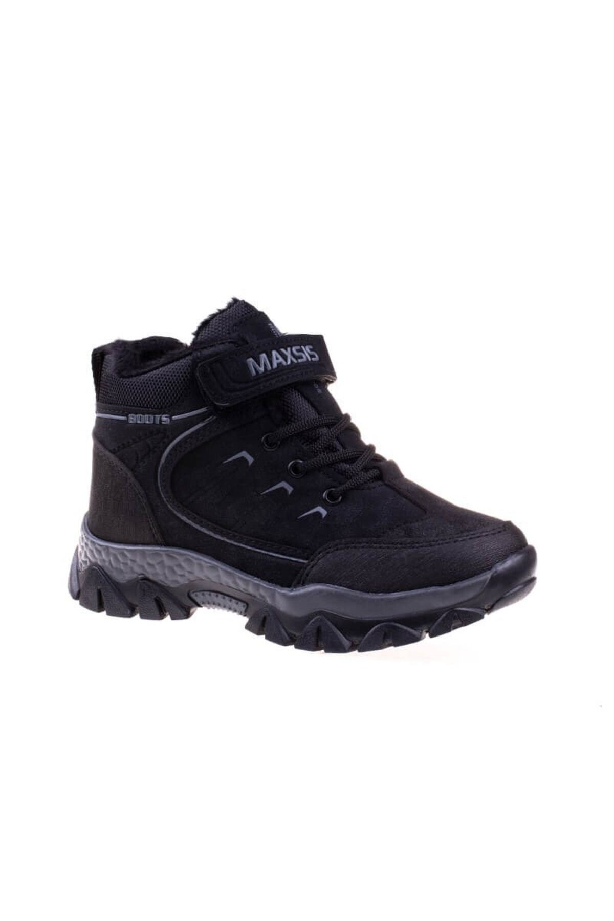 m2s Kaliteli Erkek Çocuk 26-35 Maxsıs Kauçuk Taban Siyah Bot