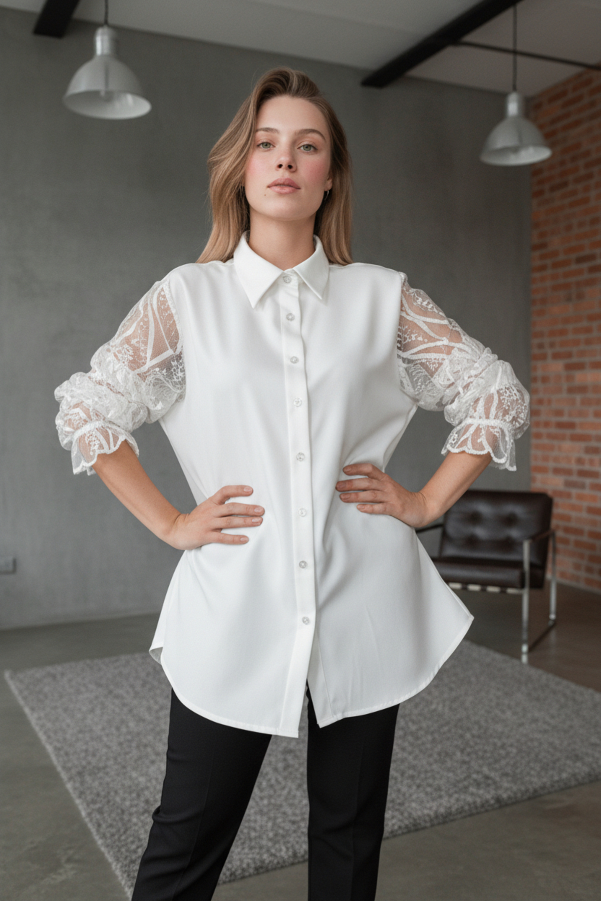 MAABMODA BEYAZ KOLU DANTELLİ BLUZ