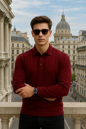 Maccali Erkek Basic Günlük Uzun Kollu Bordo Polo Yaka Tişört