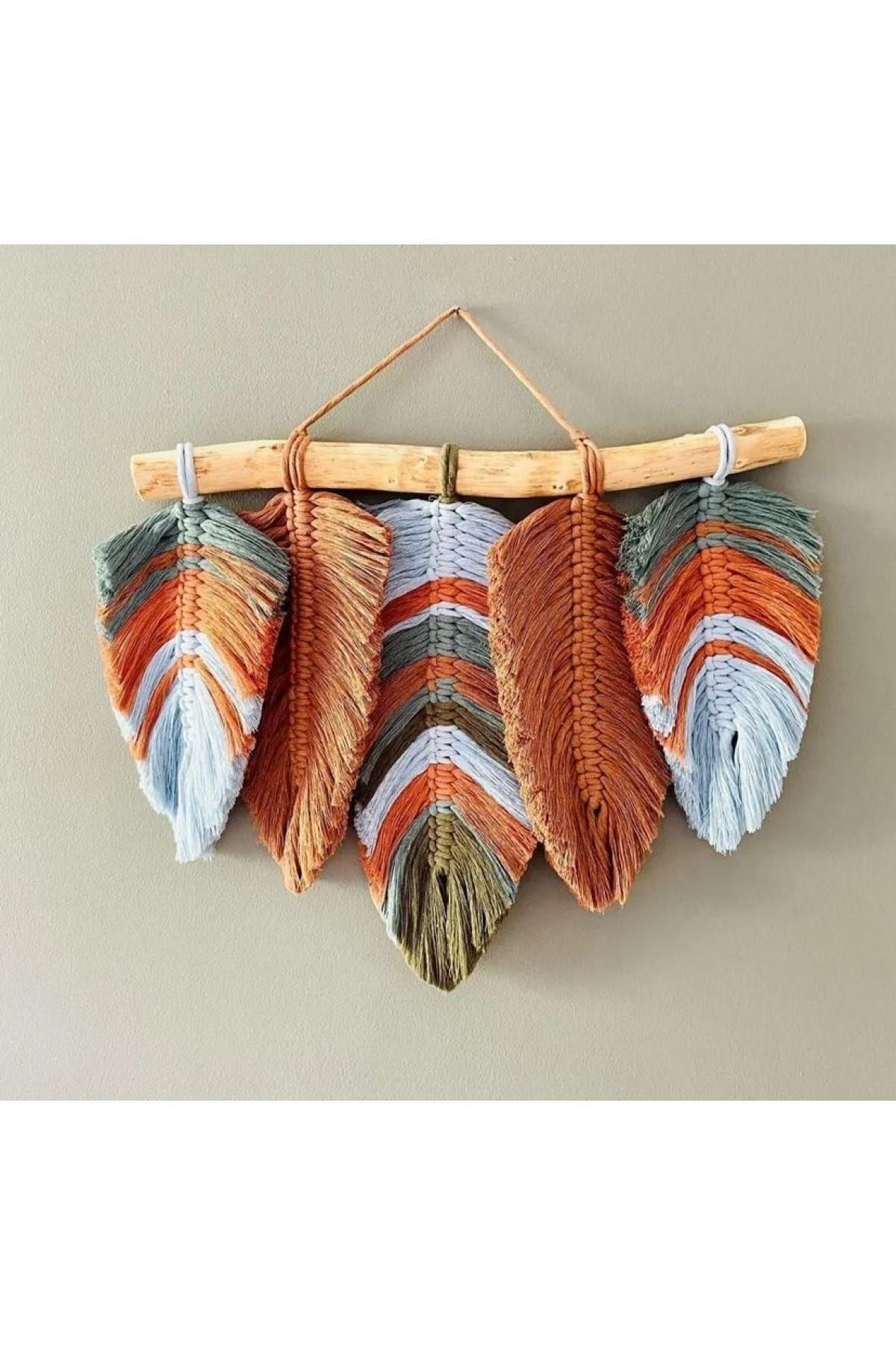 macramelina Duvar Süsü El Işçiliği Yaprak Desenli Makrome