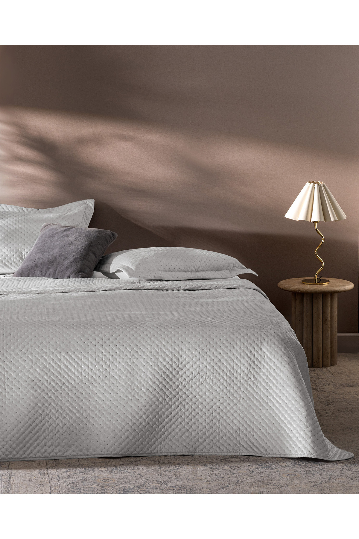 Madame Coco Boulogne Tek Kişilik Kadife Yatak Örtüsü - Gri Özellikleri