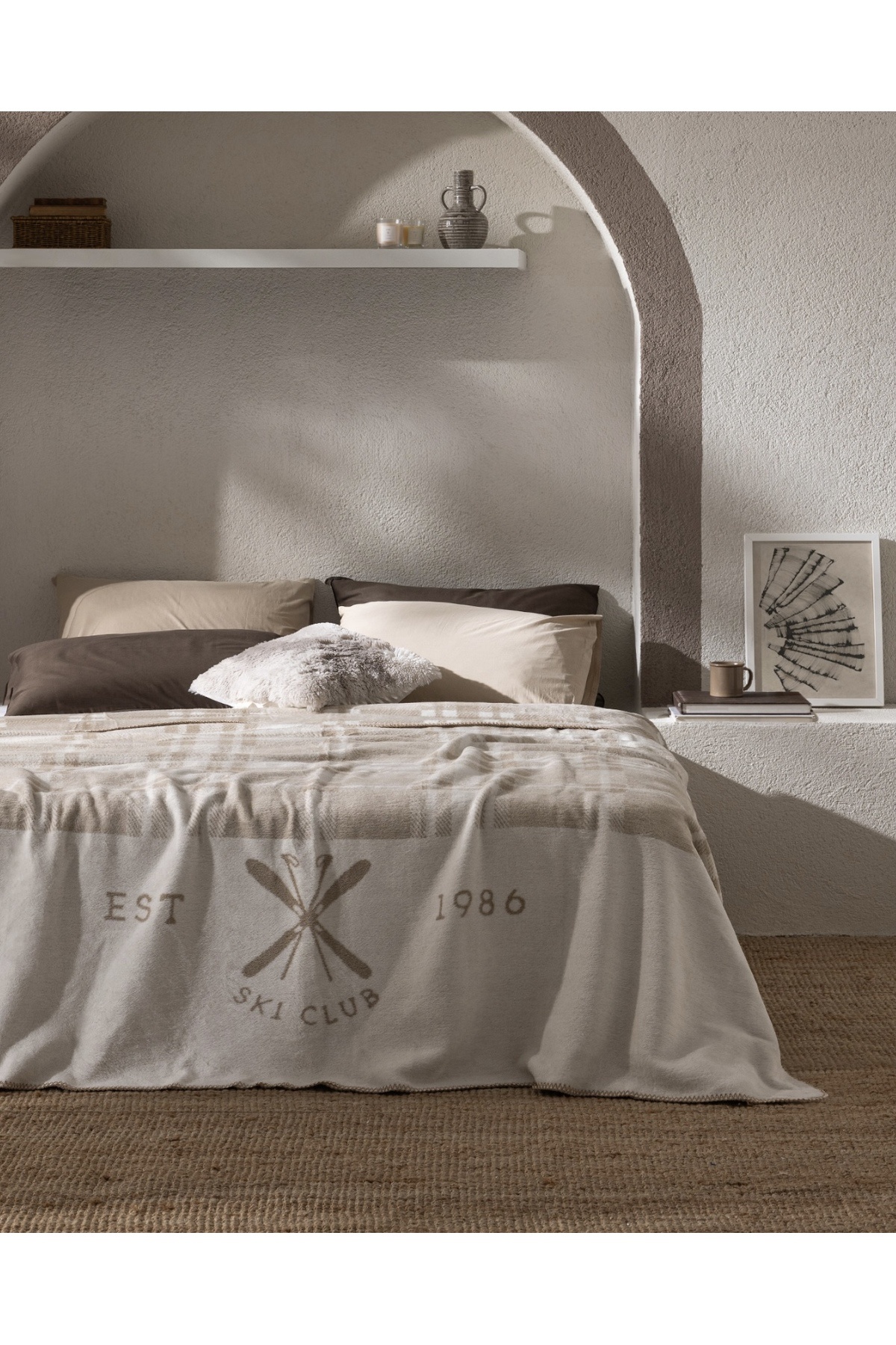 Madame Coco Cluny Çift Kişilik Pamuklu Jakar Battaniye - Bej