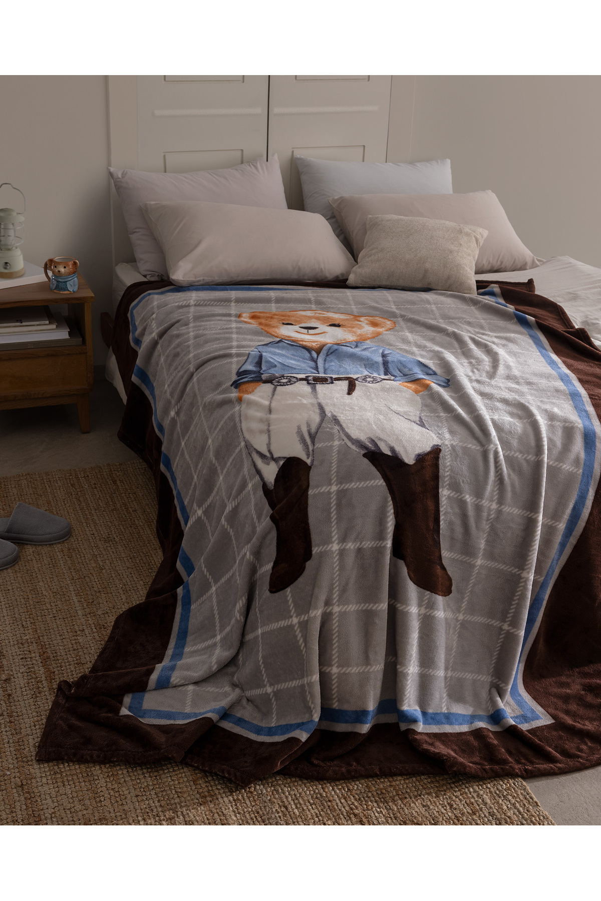 Madame Coco Gourney Ayı Tek Kişilik Welsoft Polar Baskılı Battaniye - Gri