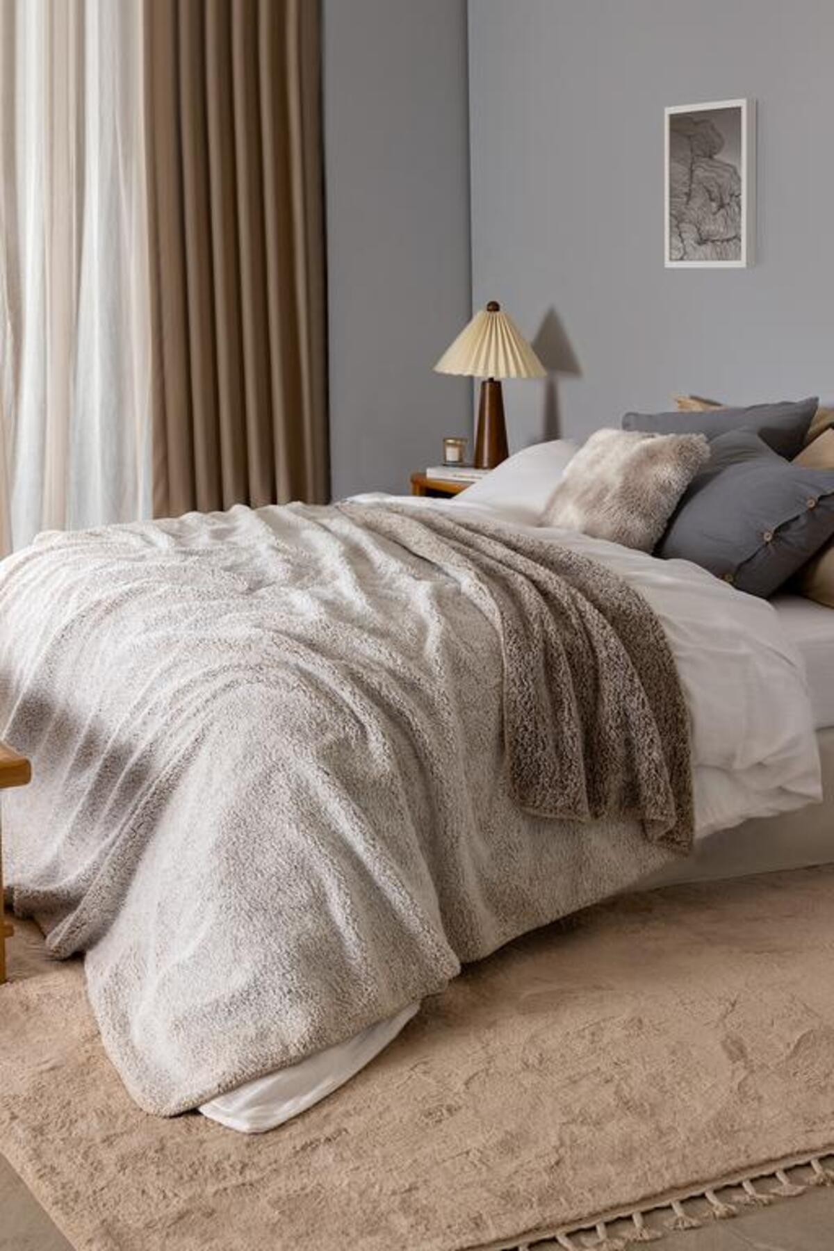 Madame Coco Nord Tek Kişilik Sherpa Battaniye - Bej - BEJ