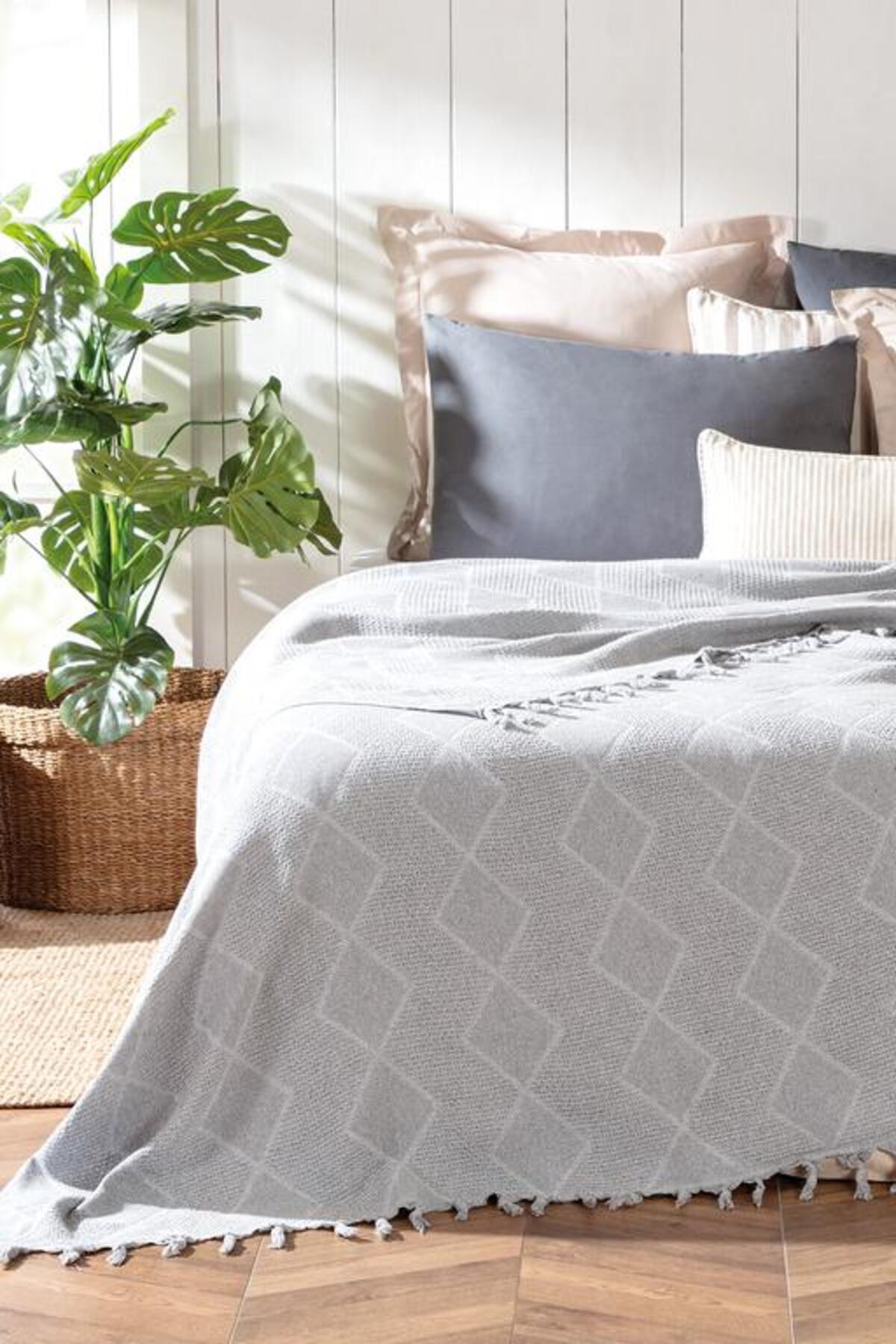 Madame Coco Yeni Sezon Basıle Çift Kişilik Yatak Örtüsü - Gri - GRİ