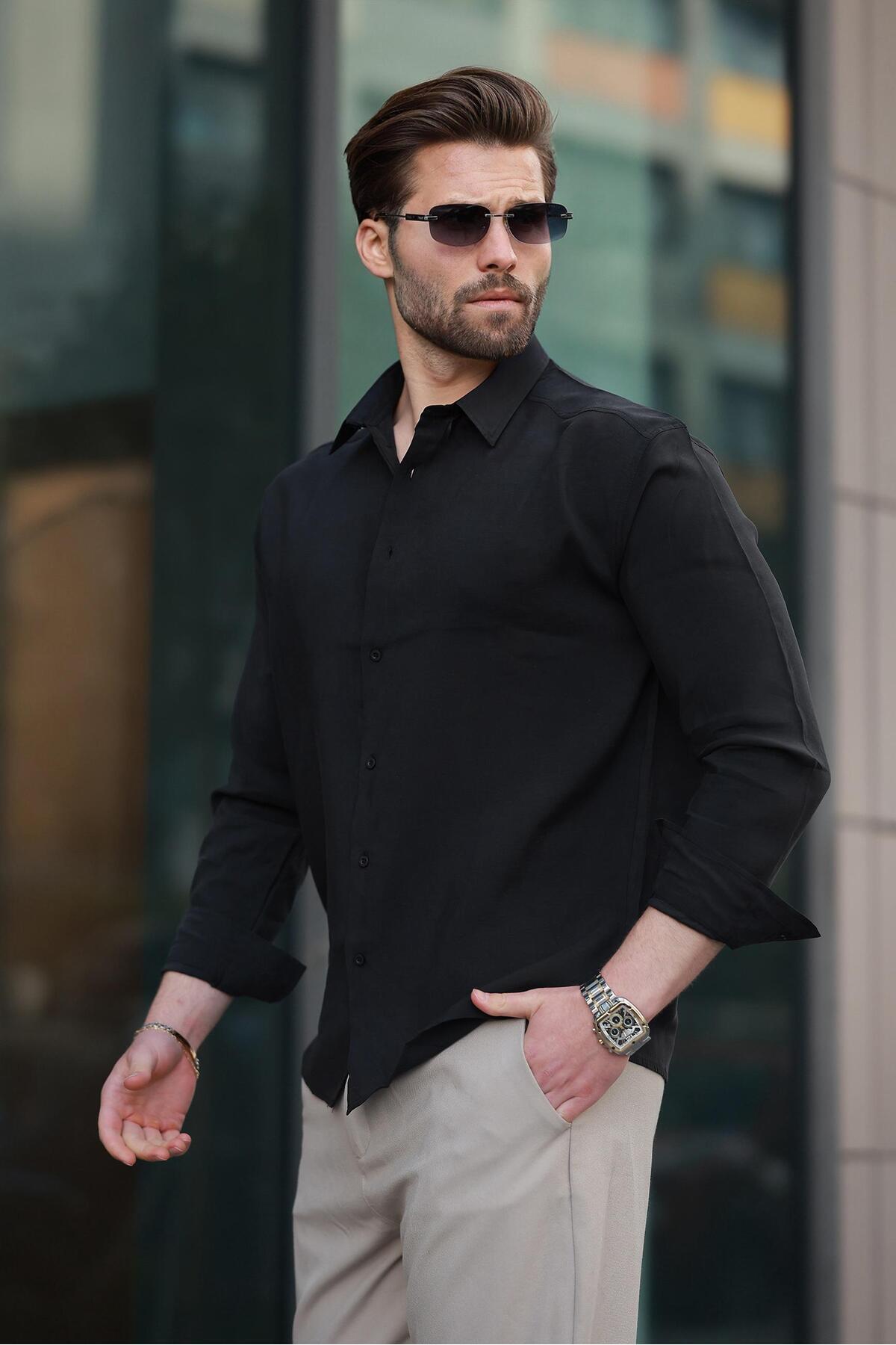 Madmext Siyah Basic Uzun Kollu Erkek Gömlek E6762