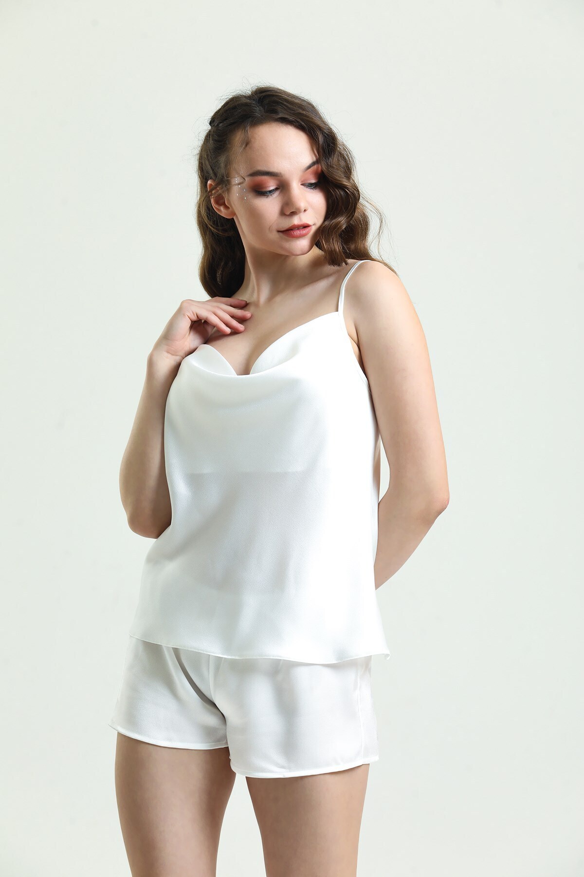 Magic Form 16790 Kadın Degaje Yaka Krep Saten İp Askılı Şort Takım -Ekru Özellikleri