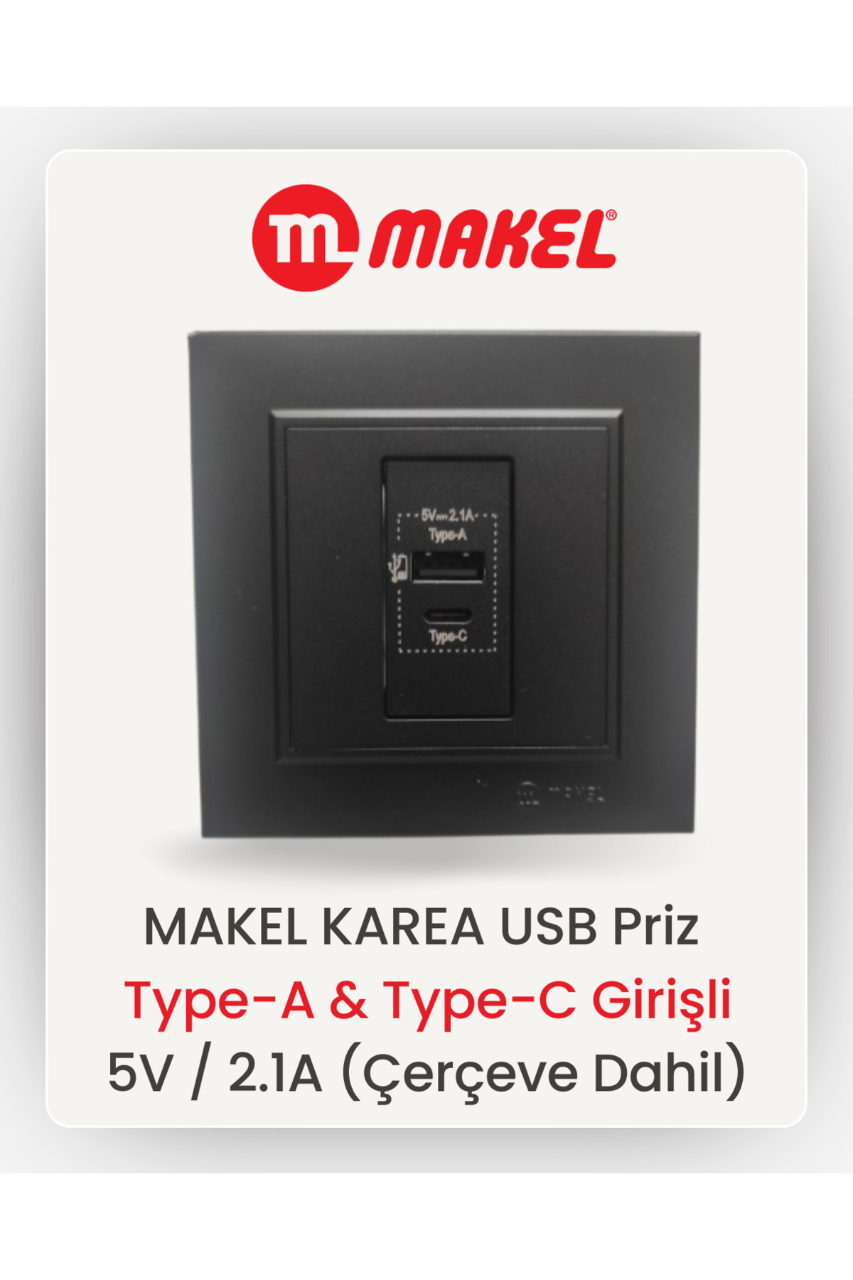 MAKEL USB Priz | Type-A & Type-C Girişli | 5V / 2.1A (Siyah)