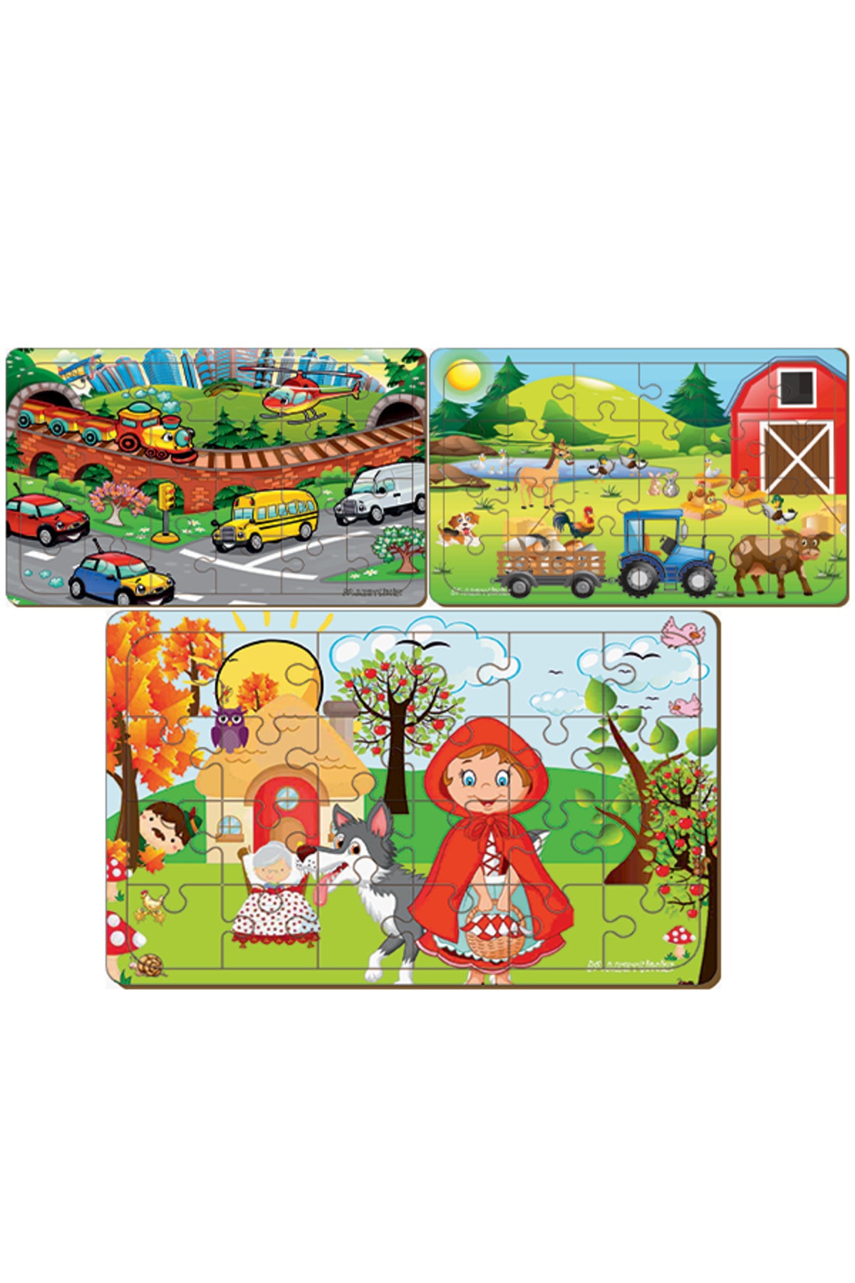 MAKETÇİNİZ 3 Adet Ahşap 24 Parça Eğitici Yapboz Puzzle Seti
