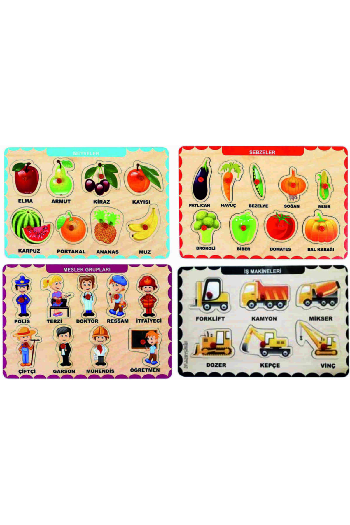 MAKETÇİNİZ 4 Adet Ahşap Tutmalı Eğitici Yapboz Puzzle Seti-8