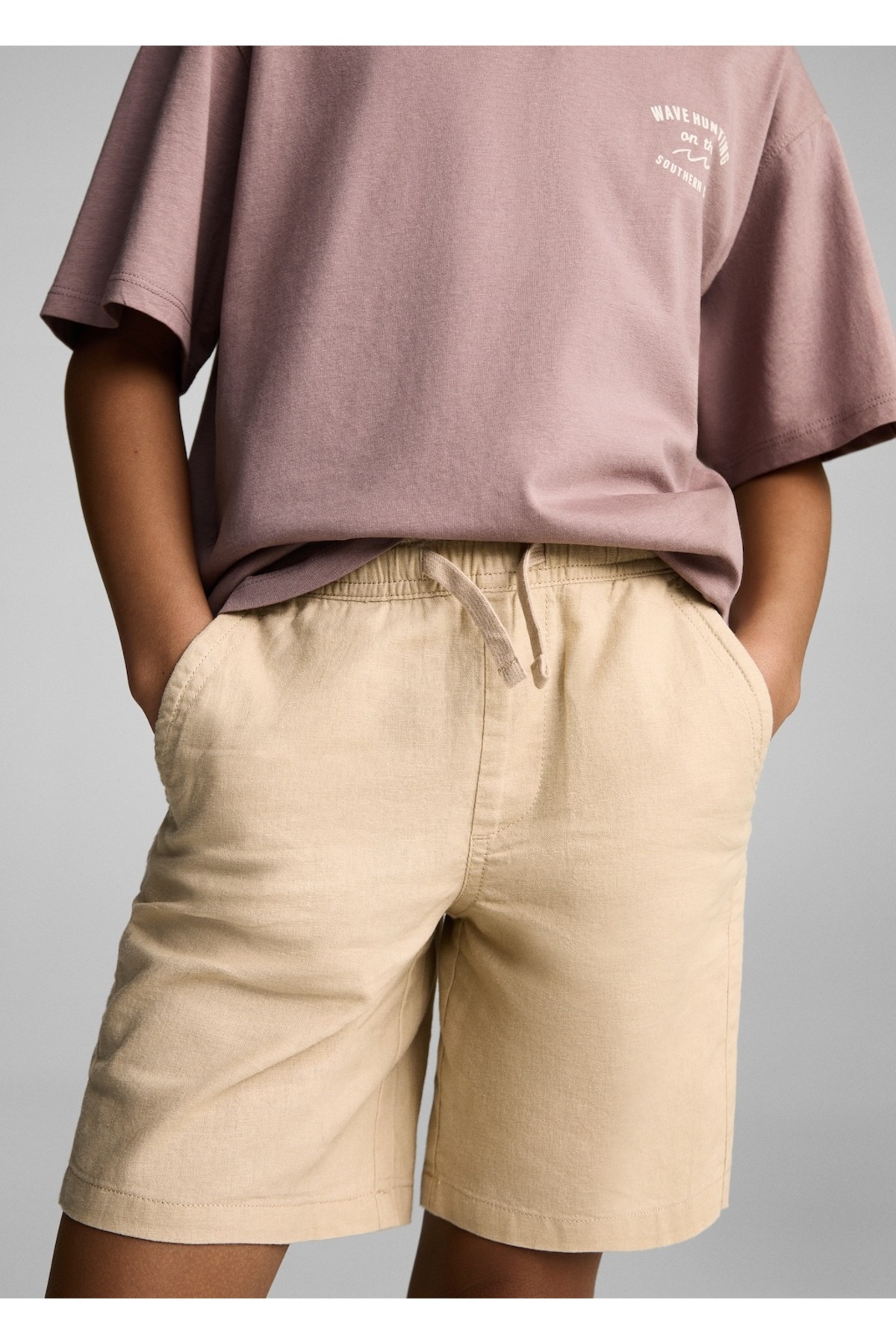 MANGO Kids Beli elastik keten bermuda şort Özellikleri