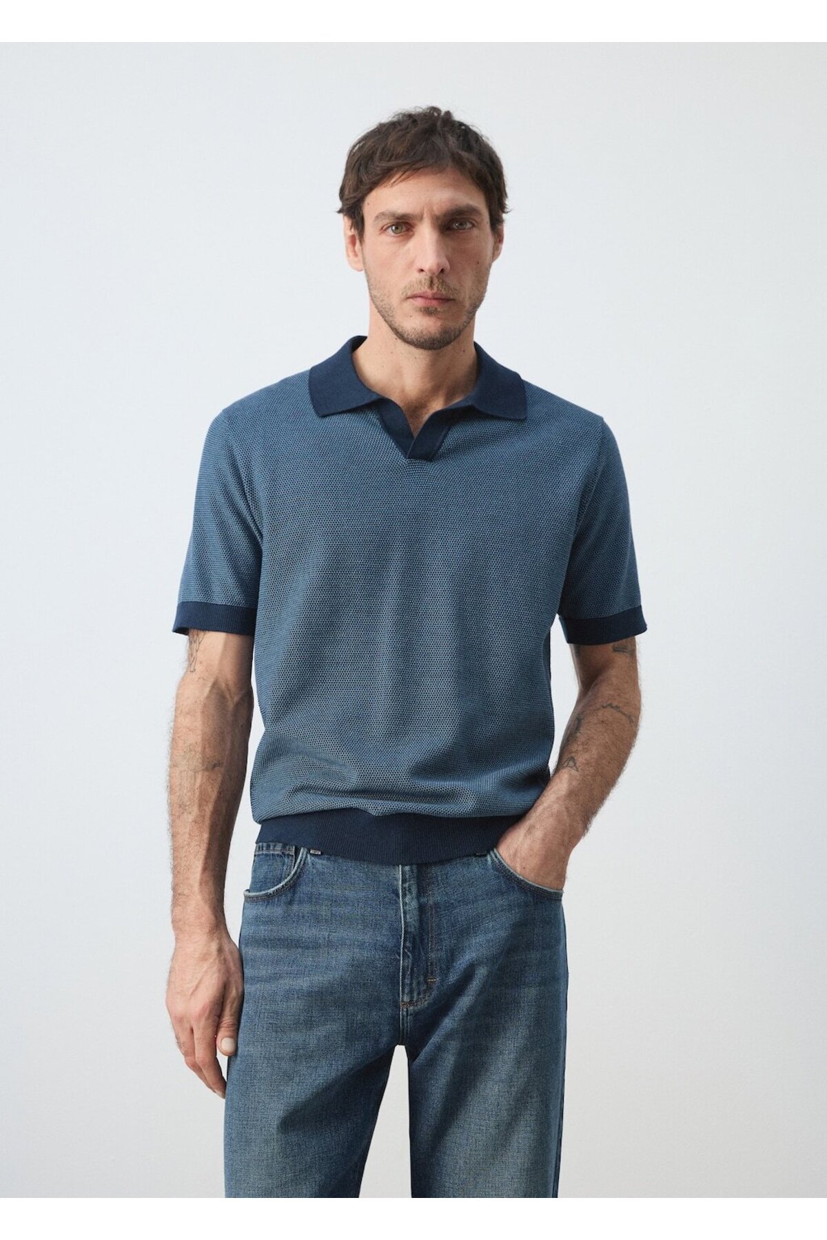 MANGO Man %100 pamuklu kombinli örme polo