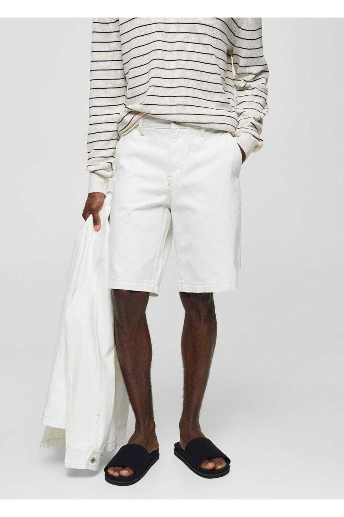 MANGO Man Pamuklu denim bermuda şort Özellikleri