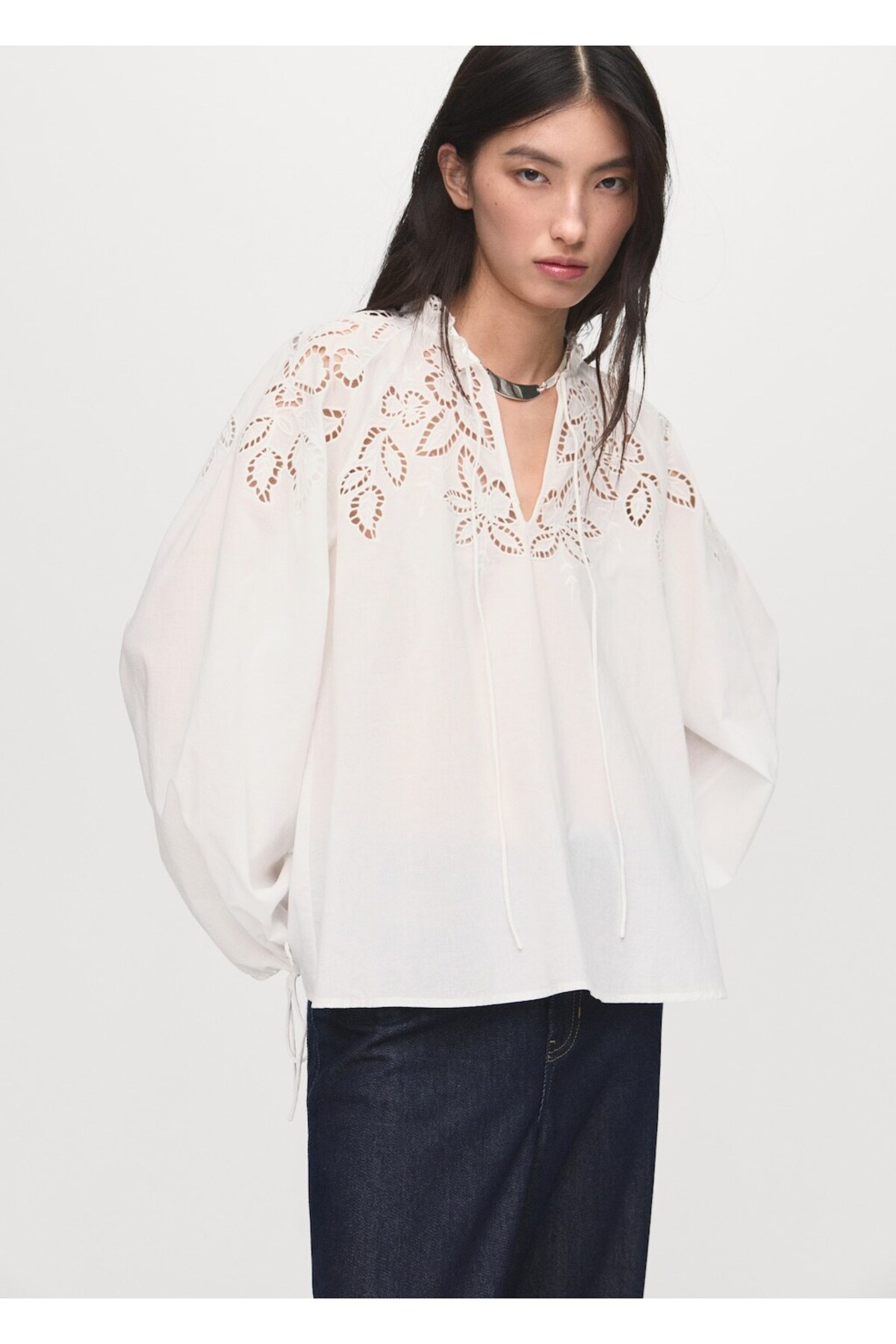 MANGO Bağ detaylı işlemeli bluz