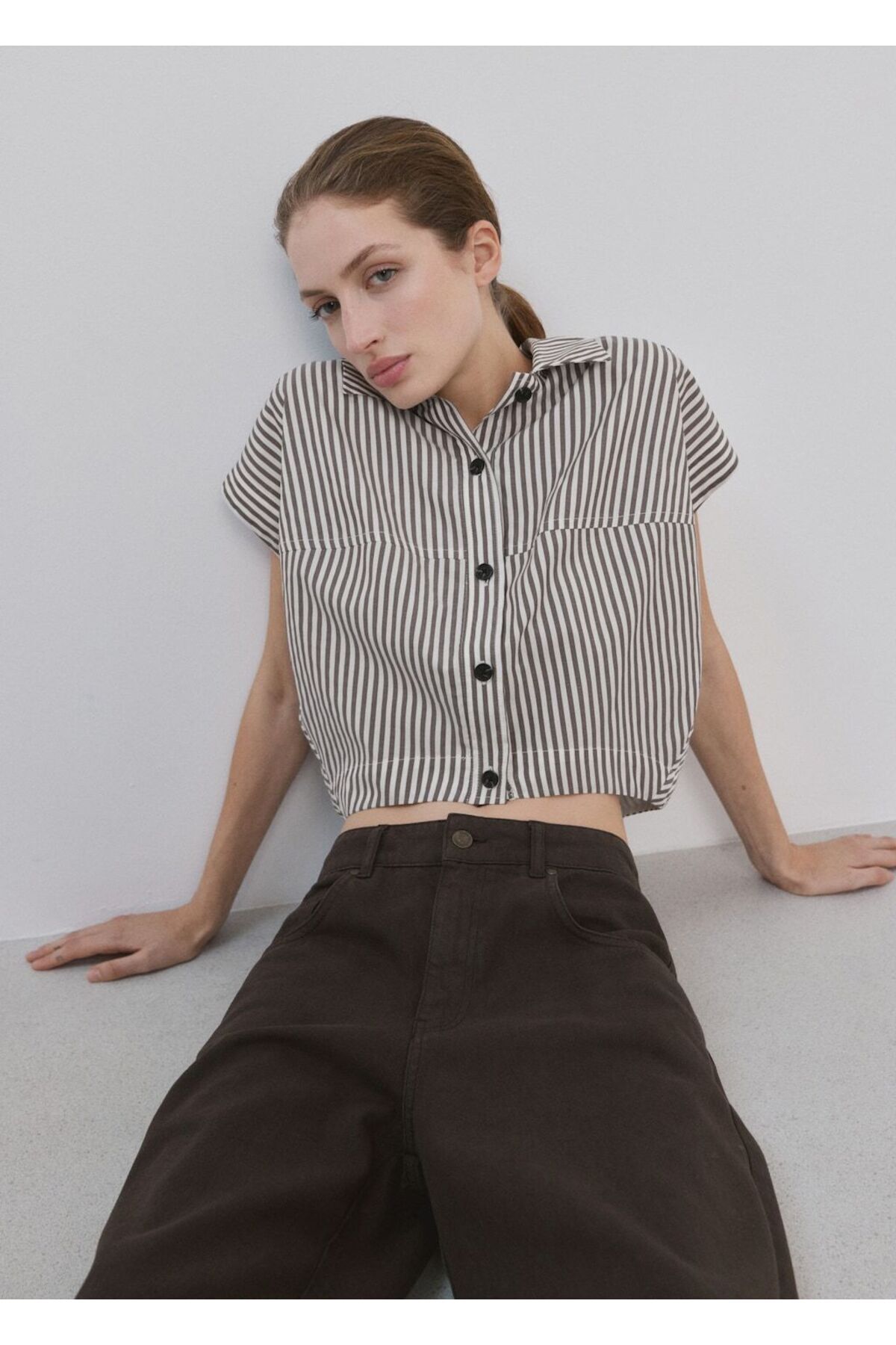 MANGO Woman Çizgili crop gömlek Özellikleri