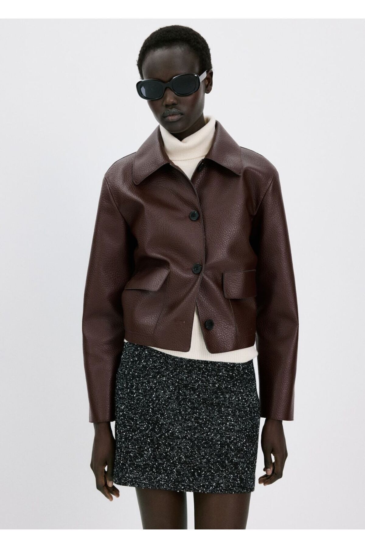 MANGO Woman Deri görünümlü cepli ceket Özellikleri