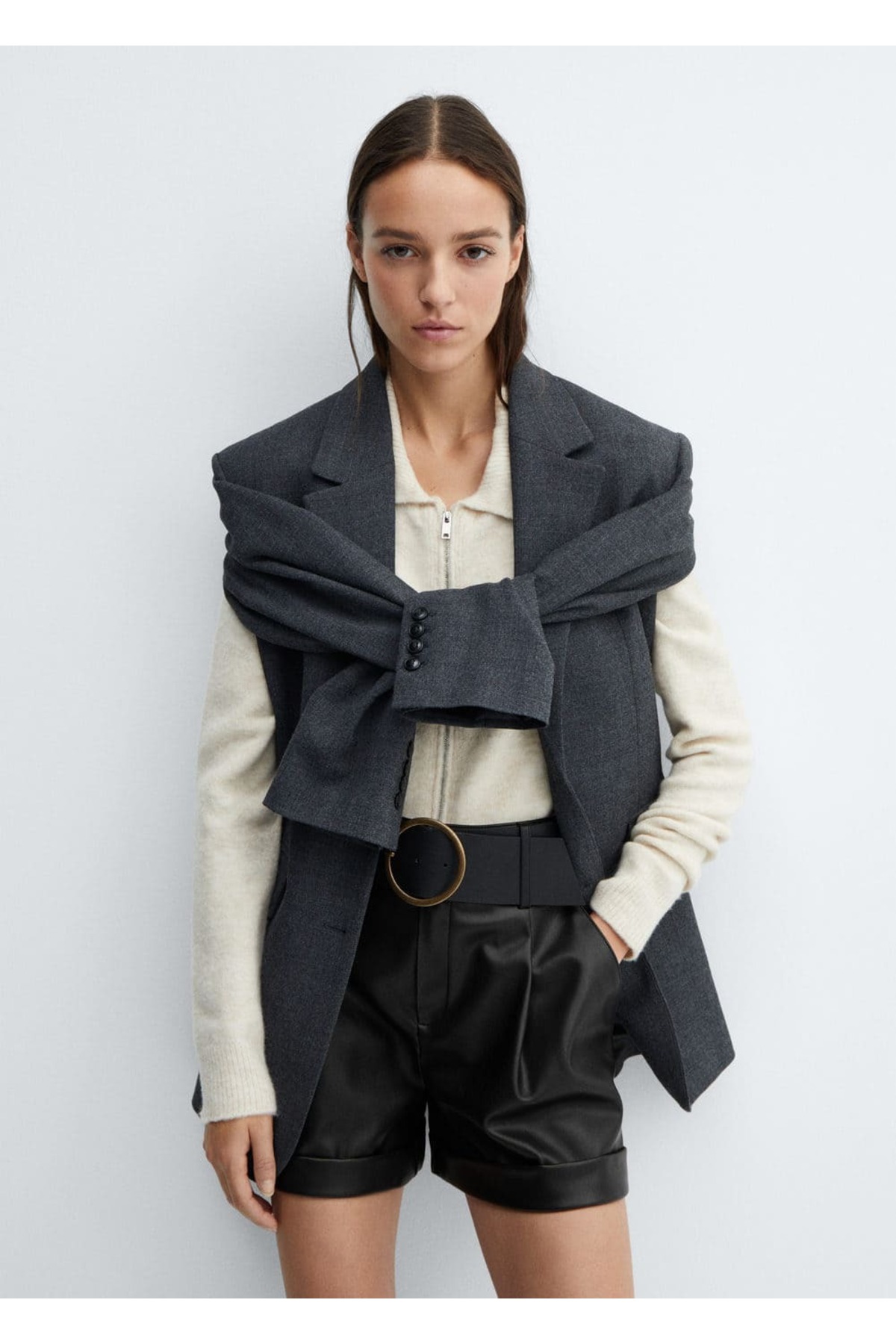 MANGO Woman Deri görünümlü kemerli şort Özellikleri