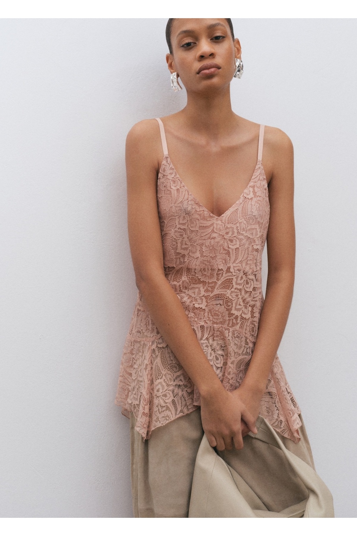 MANGO Woman Fırfırlı dantel bluz Özellikleri