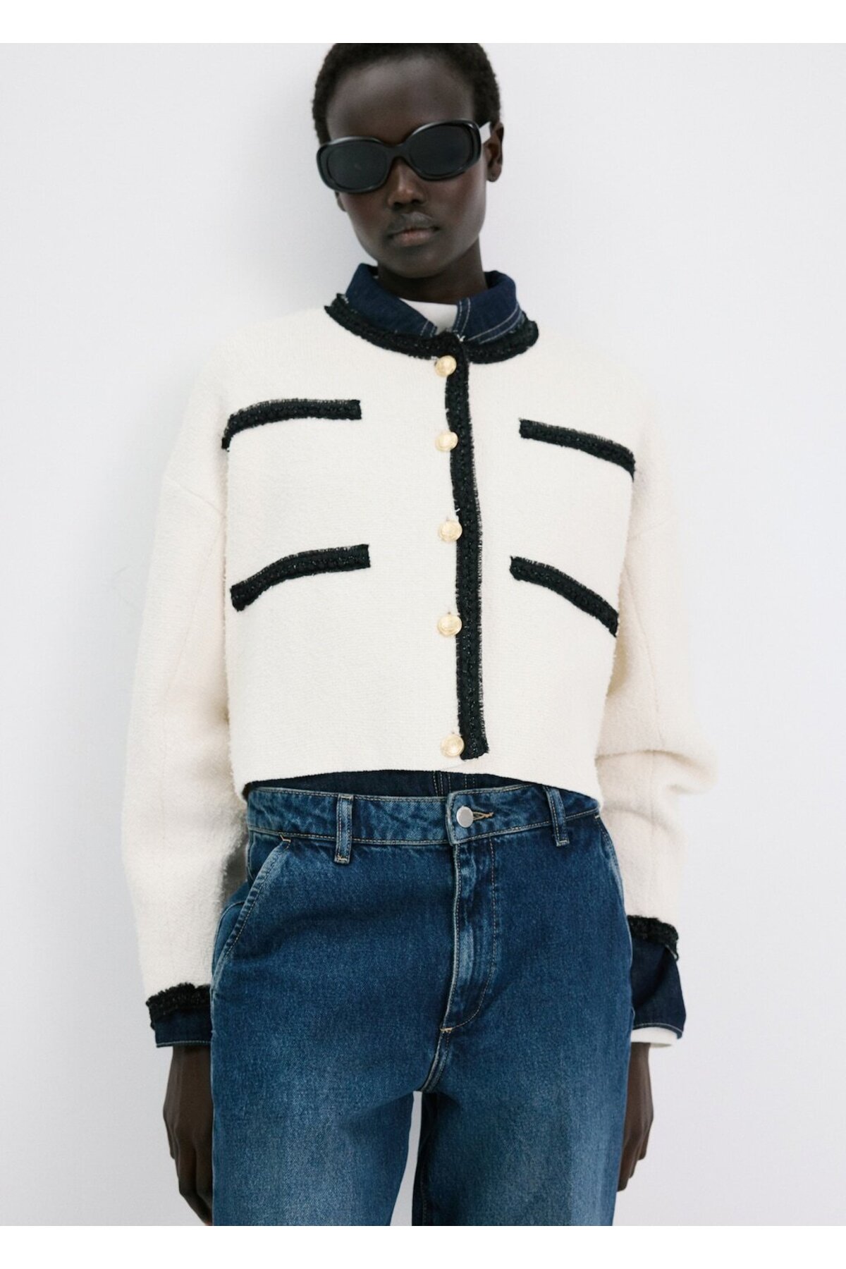 MANGO Woman Kontrast şeritli triko ceket Özellikleri