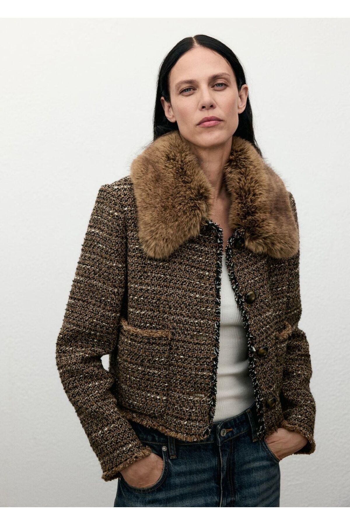 MANGO Woman Kürk yaka tüvit ceket Özellikleri