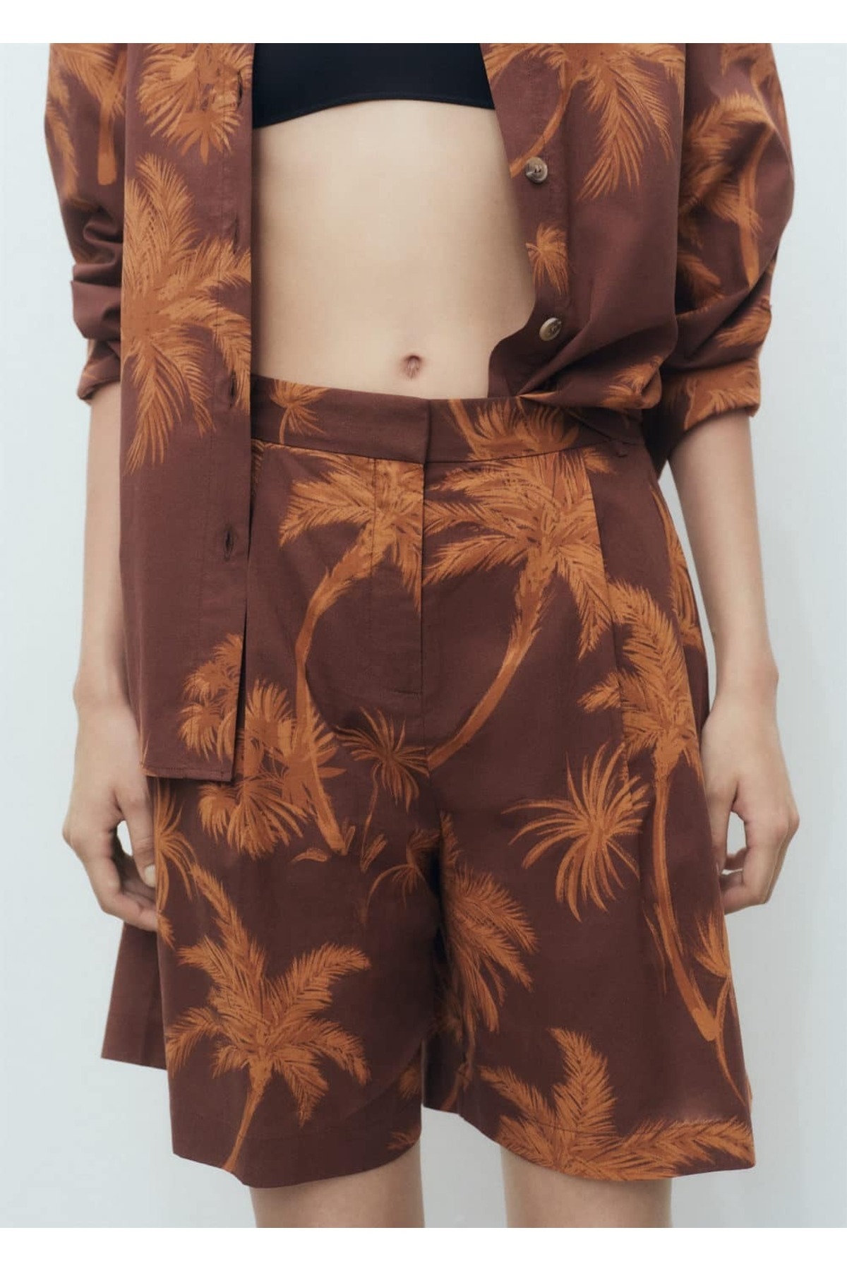 MANGO Woman Palmiye desenli pamuklu bermuda şort Özellikleri