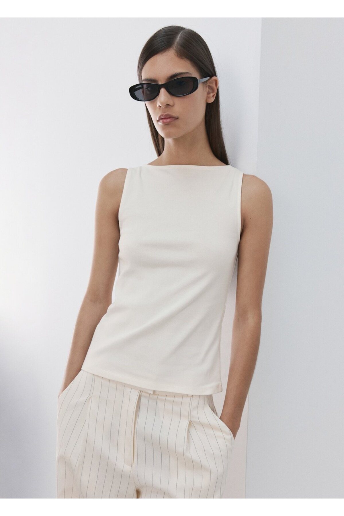 MANGO Pamuklu dar kesim bluz