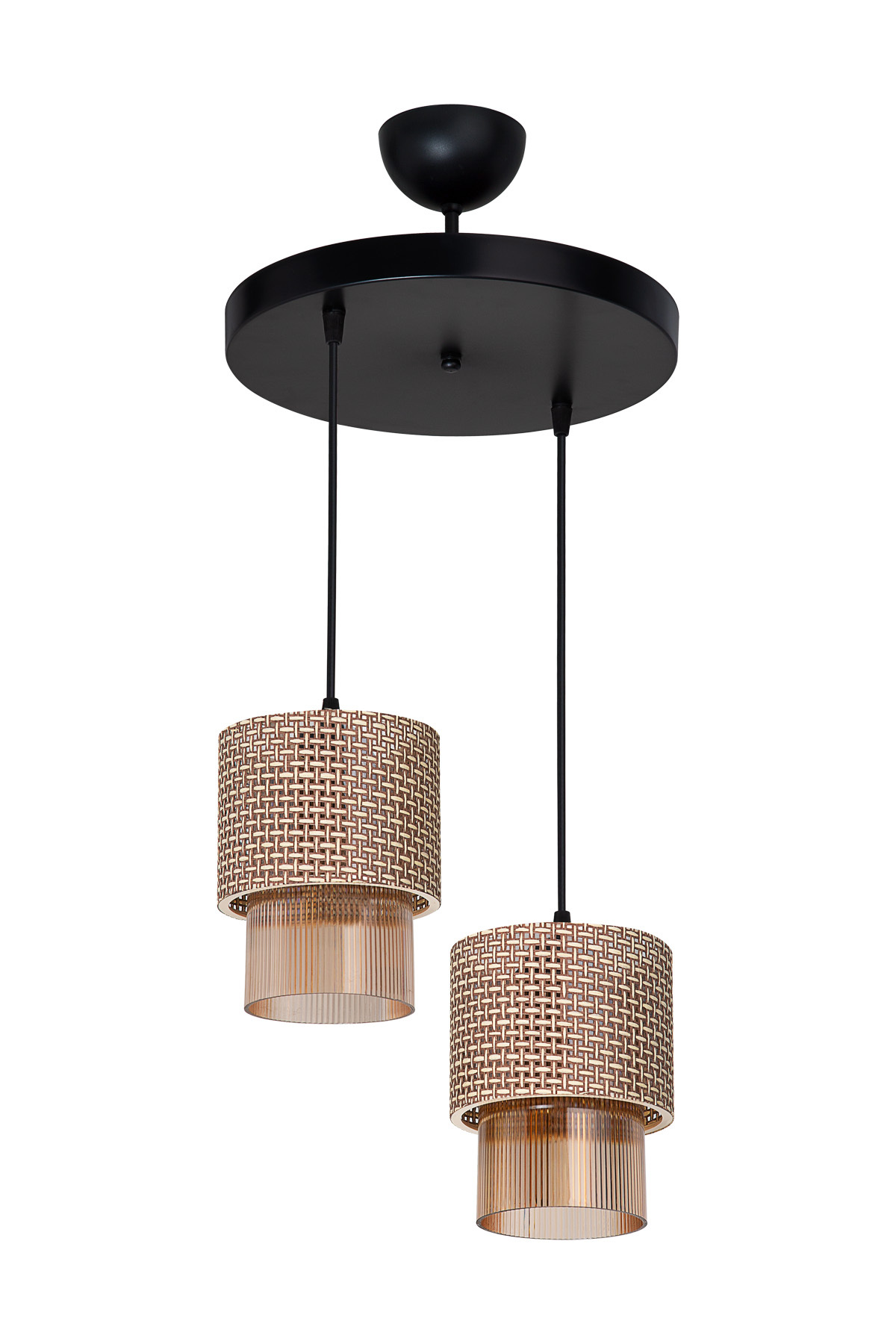 manogrup avize aydınlatma Dalya İkili Avize Siyah Hasır Bal Optik Camlı