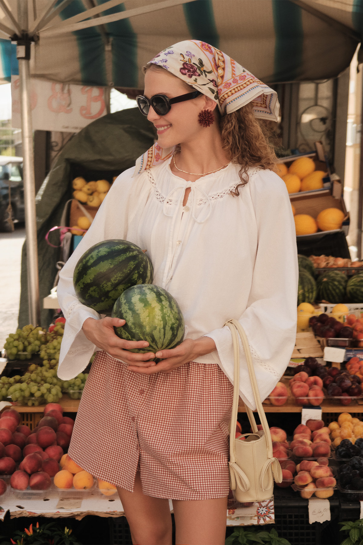 Manuka DOKULU İŞLEMELİ KISA BLUZ EKRU Özellikleri