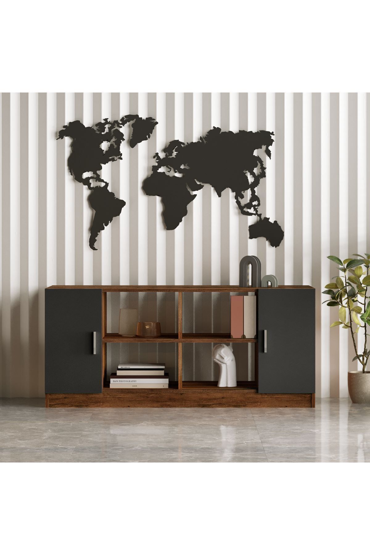 Robin Home Verona F Ofis Kapaklı Kitaplık Dolap Dosya Dolabı Barok- Antrasit Gri