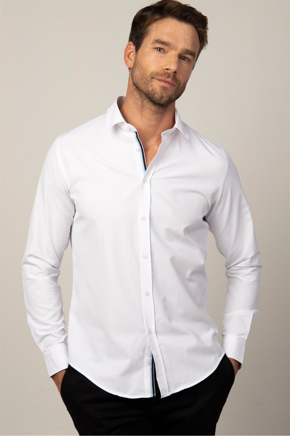 Tudors Slim Fit Uzun Kollu Armürlü Düğme Patı Manşet Içi Biyeli Erkek Beyaz Gömlek Özellikleri