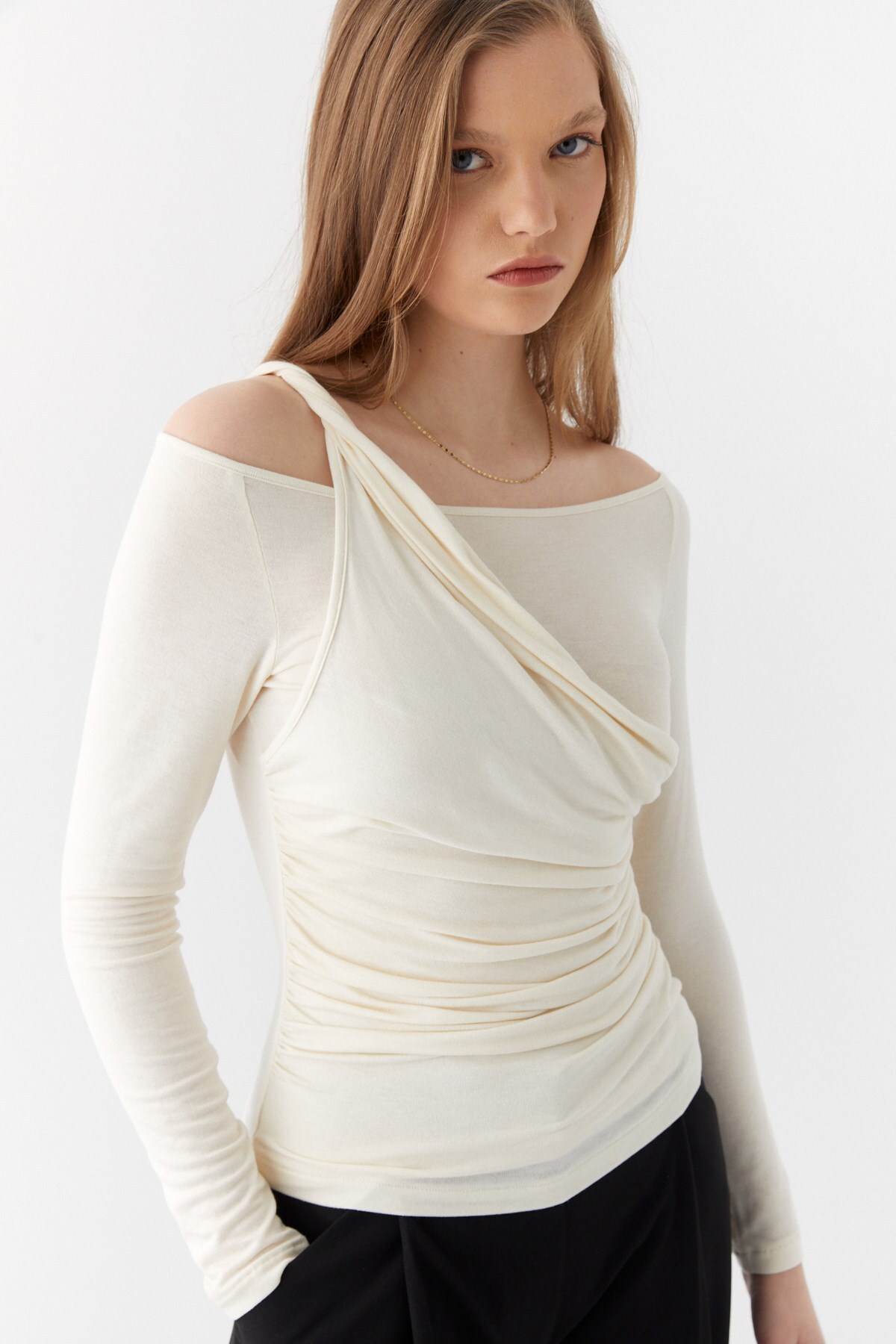 MARKALİSTE Çift Kat Drapeli Bluz Ekru Özellikleri