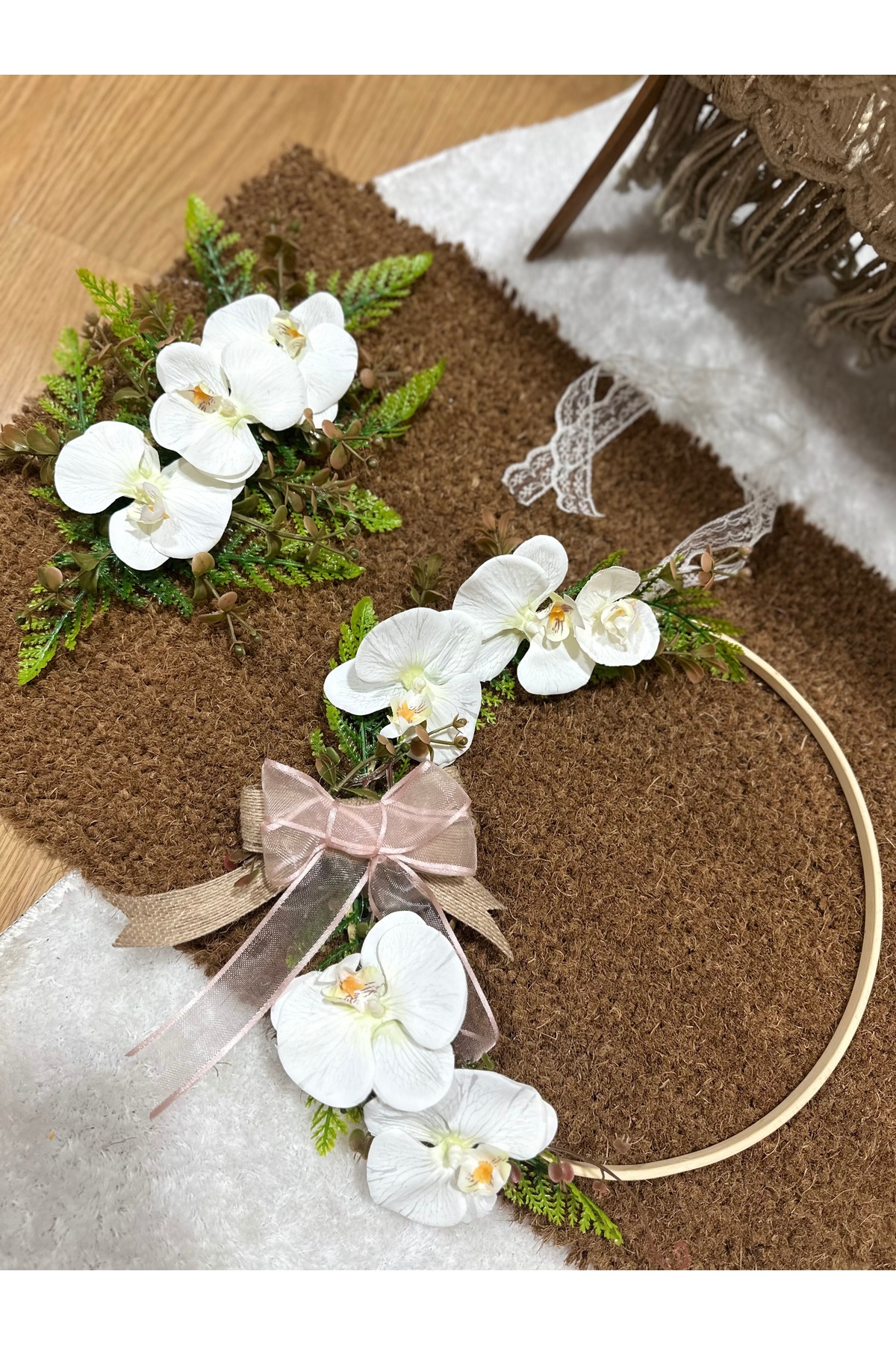 Marrone Orkideli Kapı Süsü Paspas Takımı