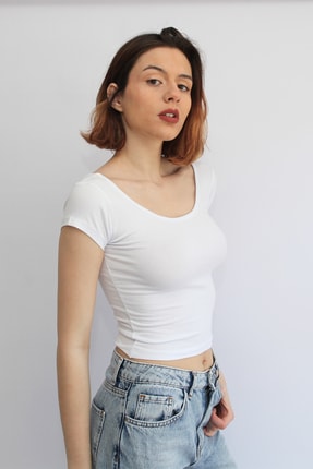 AQE FASHION Bisiklet Yaka Likralı Kısa Kollu Bebe Mavisi Bluz