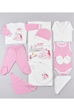 Pure Kids Store Kutulu %100 Organik Pamuk 10 Parça Kız ve Erkek Bebek Taç Nakışlı Hastane Çıkış Zıbın Seti