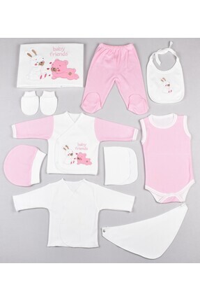 Babyhola 3 Boyutlu Tavşanlı Kız Erkek Bebek Yenidoğan 8'li Zıbın Seti 0-3 Ay Hastane Çıkış