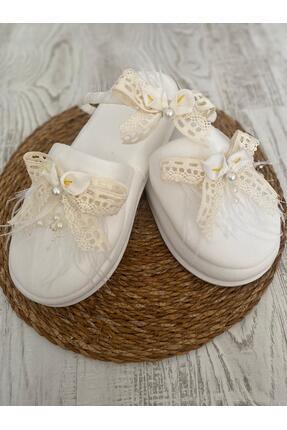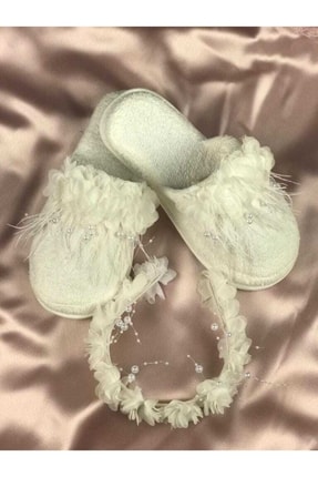 SÜSLÜTASARIM Tüylü Incili Lohusa Terlik Taç Set 1083 – Lohusa Seti – Lohusa Seti