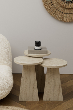 Asra Trend 3’lü Yuvarlak Zigon Sehpa Ahşap Ayaklı