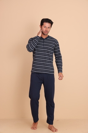 680+ ÜrünGenel Markalar Erkek Petrol Mavi M Armalı Uzun Kollu Süprem Kumaş Örme Pijama Takımı
