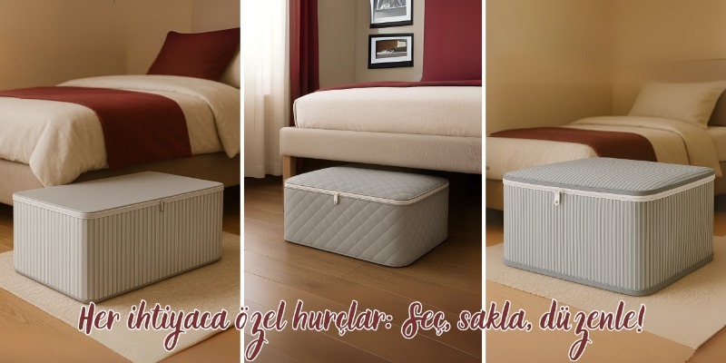 Faiend 5li Set Hurç Baza Altı Düzenleyici Hurç Dolap Içi Sandık Düzenleyici Çanta ( 62 X 46 X 22 )