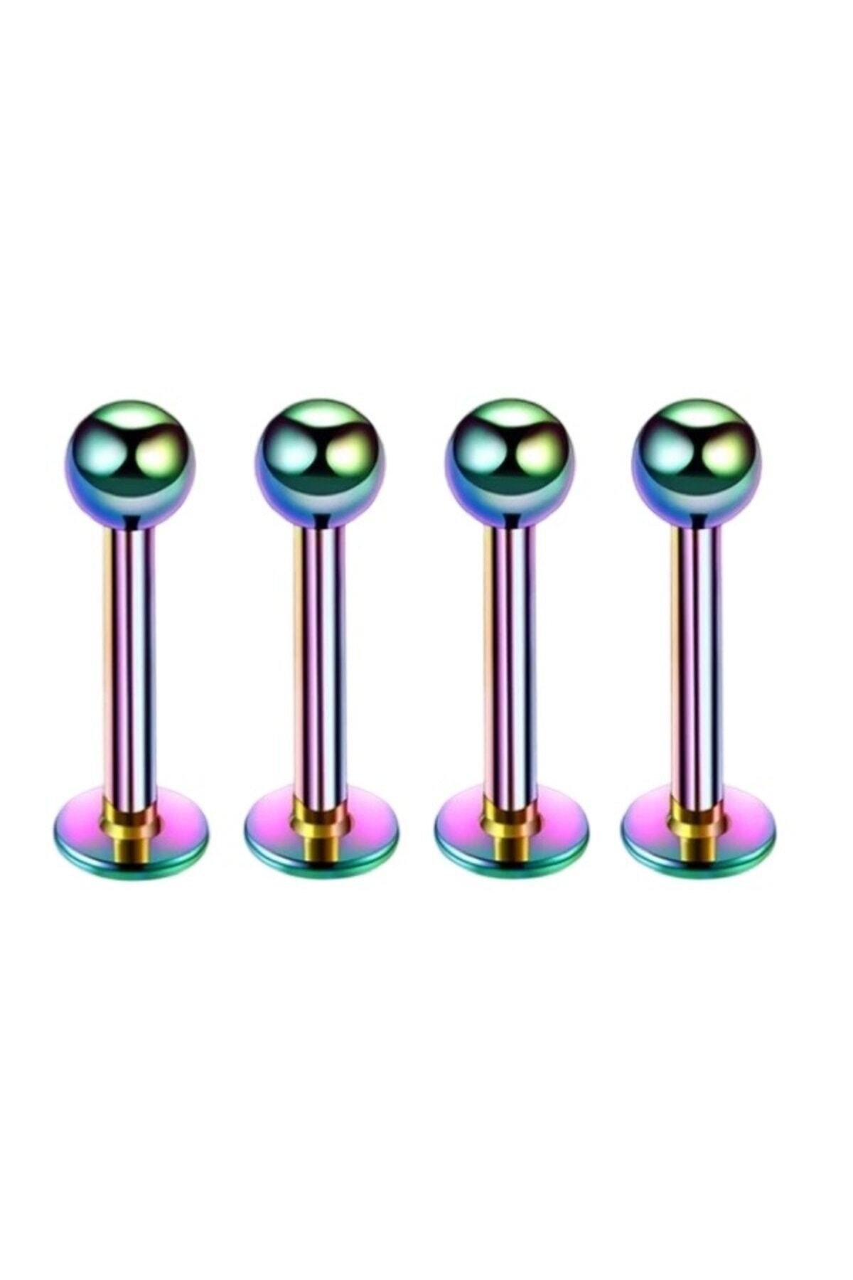 MAZEN 316l Cerrahi Çelik 4'lü Set Tek Top Neon Tragus, Helix, Dudak Piercing