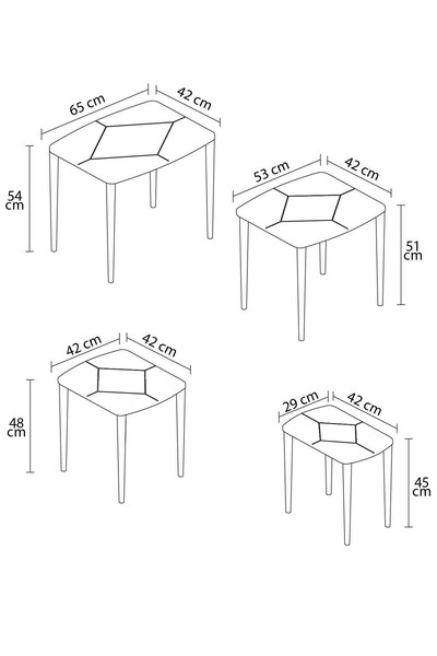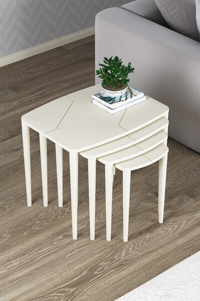 asaella mobilya Stella Mdf Ve Lake Boya, Krem 4lü Zigon Sehpa Takımı, Gold Gürgen Ayaklar
