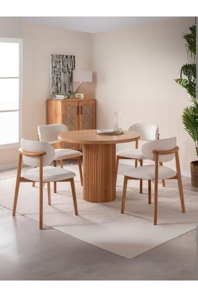 Gazzini Furniture Boho İskandinav Natural Ahşap Masa Sandalye Takımı 90x90