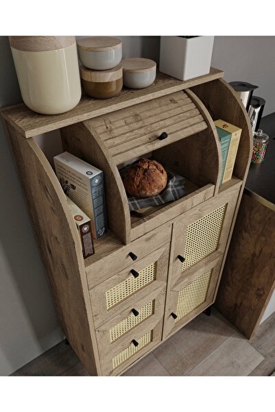 ROSEPAL Astana 9 Bölmeli Meşe Kuru Bakliyat Saklama Dolabı Ekmeklik