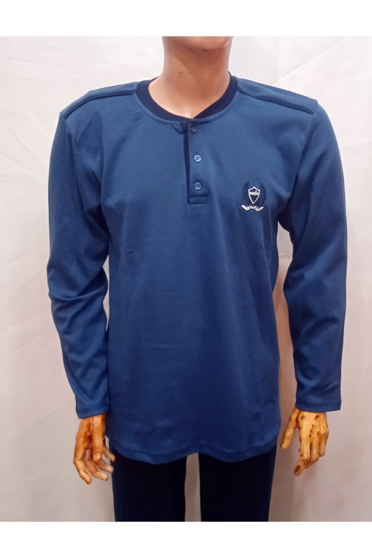 Mefa Pijama Erkek Mavi Pamuklu 3 Düğmeli Tek Pijama Üstü Pamuklu