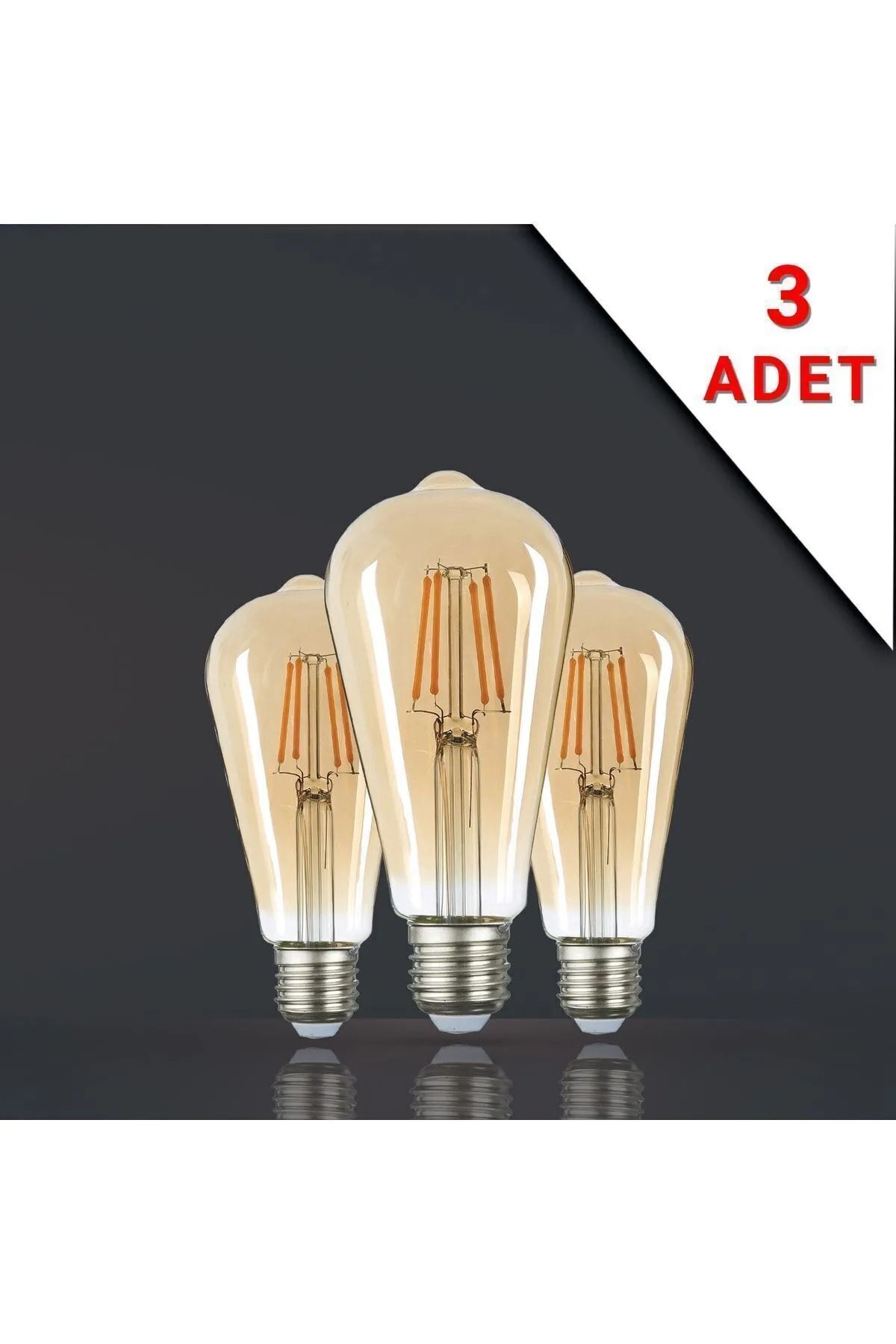megüsa 3 Adet Led Filamanlı E27 Rustik Ampul 4 Watt Gün Işığı St64