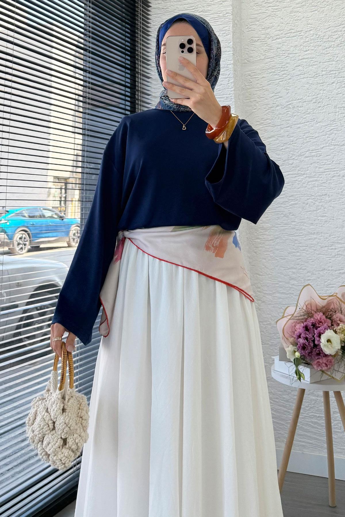 MELEK ARAZ Volan Kol Basic Bluz - Lacivert